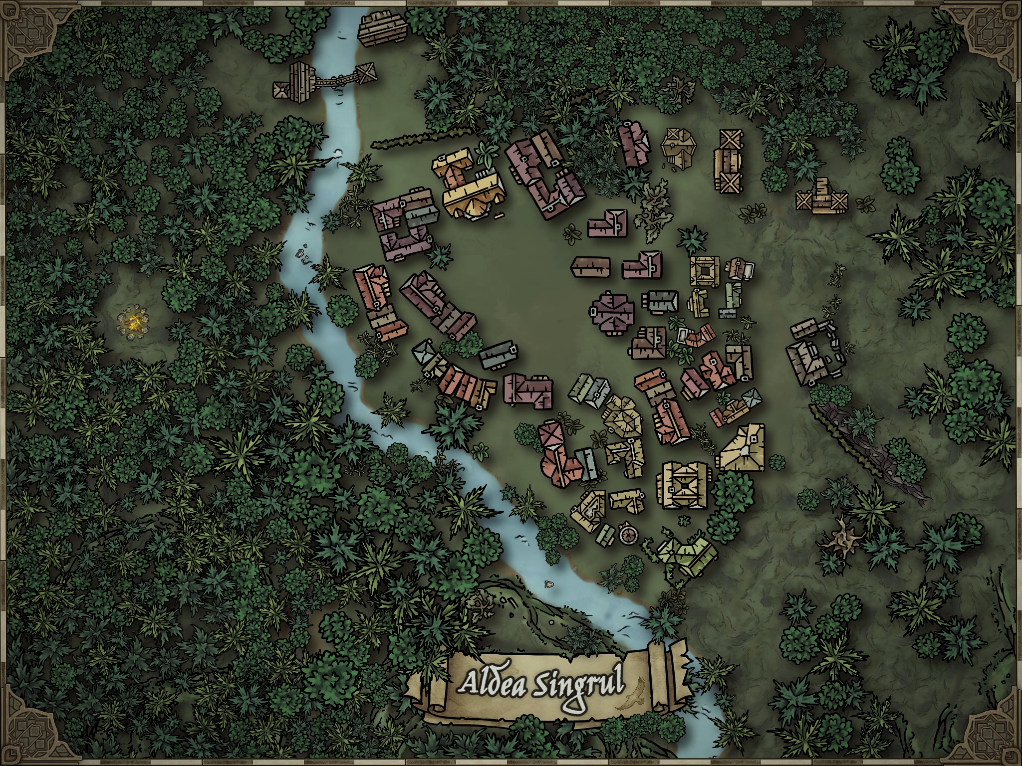 Situada en un pequeño claro a los pies de un río que da paso a la frondosidad del bosque, es el refugio perfecto para una raza a la que no le gusta en exceso el contacto exterior. Sus encomiables habitantes, los singrul, se caracterizan por sus brillantes ojos anaranjados y un exótico poder para entrar en la conciencia de los animales y controlar sus movimientos a voluntad.